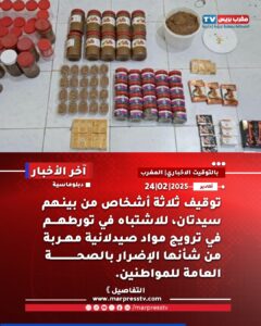 وقد جرى توقيف المشتبه فيها الأولى ووالدتها بداخل منزل بمدينة إنزكان، وهما في حالة تلبس بإعداد وترويج خلطات من مواد كيميائية وتقليدية بغرض استعمالها في زيادة الوزن، حيث أسفرت عملية التفتيش عن حجز 19 كيلوغراما من هذه المواد ومجموعة من العبوات البلاستيكية المستعملة في تعبئتها، علاوة على 1000 قرص طبي مهرب يستعمل أيضا لزيادة الوزن.
