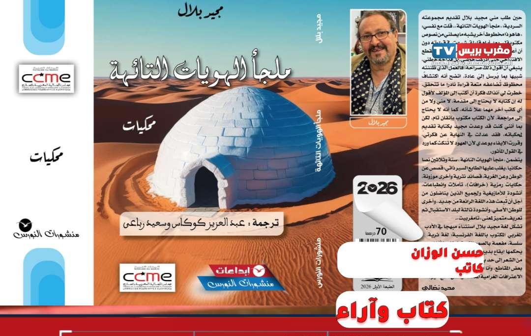 حسن الوزان |يعدّ “ملجأ الهويات التائهة” من أبرز الأعمال في الأدب المغربي المكتوب بالفرنسية، حيث تتجلّى، منذ السطور الأولى، الموهبة اللامتناهية للمؤلف، إلى جانب استقلاله الفكري المتألق. ما أتمناه هو أن يجد هذا الكتاب، بعد نشره، طريقه إلى القارئ المغربي وأن توليه الصحافة الوطنية الاهتمام الذي يستحق. من هذا النداء الذي أطلقه الكاتب الكبير محمد نضالي جاء الكتاب الذي كتبه مجيد بلال وترجمه إلى العربية عبد العزيز كوكاس وسعيد رباعي، وصدر عن منشورات النورس في طبعته الأولى سنة 2026، إنه نص سردي يقع في المنطقة الرمادية بين السيرة والاعتراف والتأمل الإنساني. يتعامل مع الهوية لا باعتبارها معطى ثابتًا أو بطاقة تعريف اجتماعية، بل باعتبارها تجربة معيشة، هشة، ومفتوحة على التحول الدائم. فالهويات في هذا الكتاب ليست قلاعًا صلبة، بقدر ما هي كائنات متحركة تبحث عن مأوى، تمامًا كما يبحث الإنسان عن مكان يضع فيه ذاكرته المتعبة.