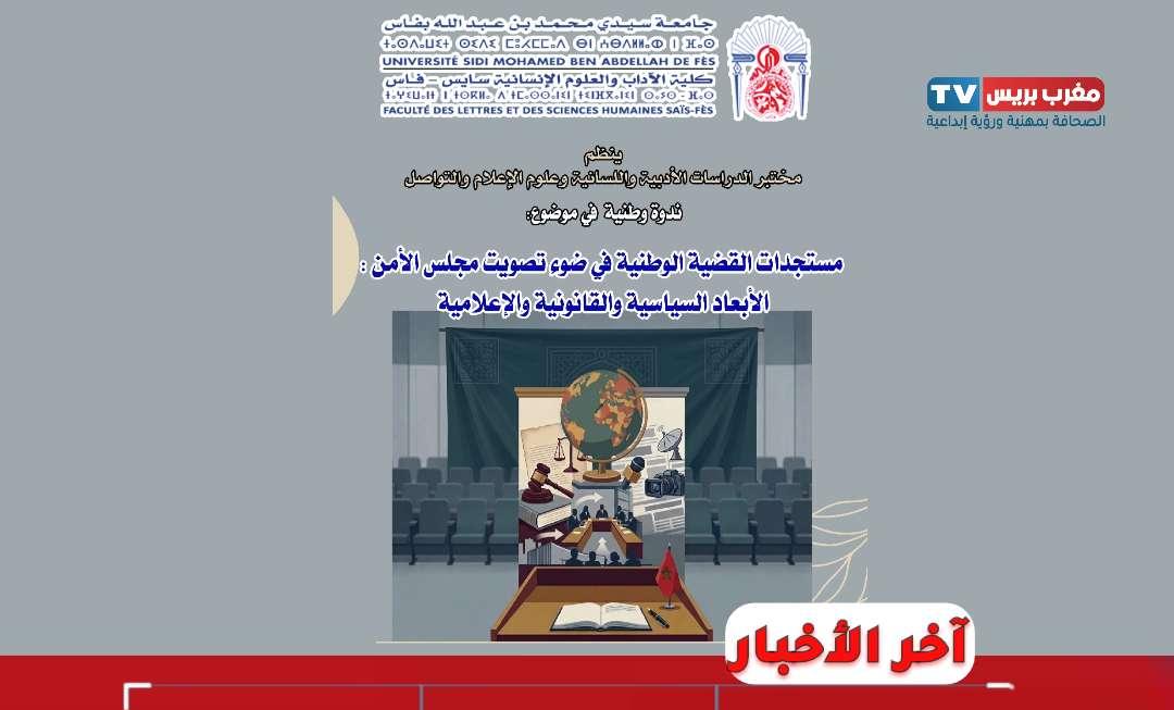 فاس – احتضنت كلية الآداب والعلوم الإنسانية سايس – فاس، التابعة لجامعة سيدي محمد بن عبد الله، يومي 17 و18 أبريل 2026، ندوة وطنية علمية حول موضوع: «مستجدات القضية الوطنية على ضوء تصويت مجلس الأمن: الأبعاد السياسية والقانونية والإعلامية»، وذلك بمبادرة من مختبر الدراسات الأدبية واللسانية وعلوم الإعلام والتواصل.