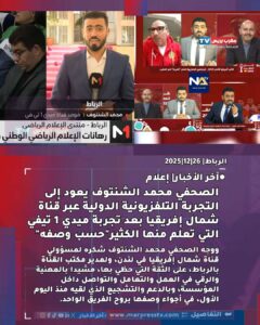 الرباط| عاد الصحفي محمد الشنتوف إلى التجربة التلفزيونية من بوابة الإعلام الدولي، من خلال قناة شمال إفريقيا، حيث شرع في إعداد وتقديم برنامج جديد بعنوان “كان المغرب 2025″، في تجربة مهنية جديدة تجمع بين البعد الإعلامي الدولي والرؤية التحريرية المهنية.