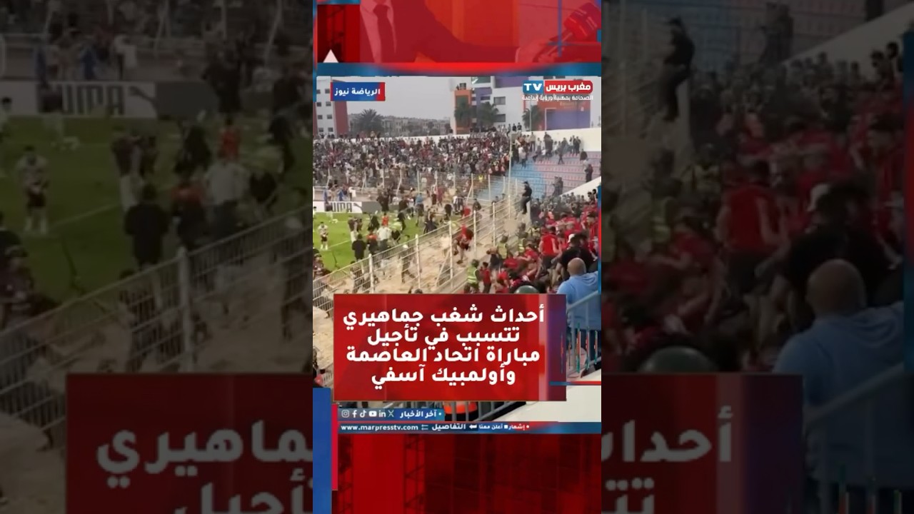 صوت وصورة أحداث شغب جماهيري تتسبب في تأجيل مباراة اتحاد العاصمة وأولمبيك آسفي بواسطة مغرب بريس في 19 أبريل، 2026 | 11:00 مساءً شارك شارك FacebookWhatsAppالبريد الإلكترونيTelegram